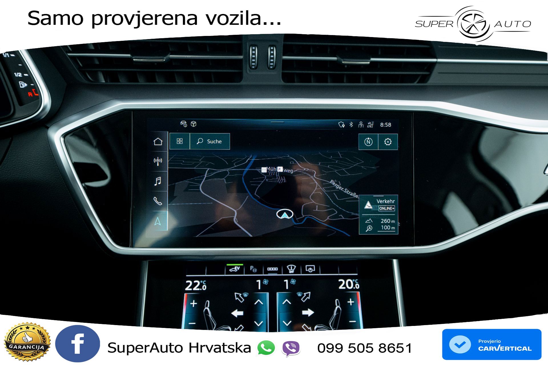 Auto je u vrhunskom stanju, sa servisnom knjigom. Od opreme: ➡️ACC - Adaptivni tempomat ➡️Android Auto ➡️Apple CarPlay ➡️Pomoć pri kočenju u nuždi ➡️Asistent za duga svjetla ➡️Head-Up Display ➡️Velika navigacija ➡️Panoramski krov ➡️Kamera ➡️Grijanje sjedala ➡️Virtual cockpit Vozilo se nalazi u Njemačkoj i za nekoliko radnih dana može biti u Hrvatskoj spreman za preuzimanje. Za sva naša vozila dajemo garanciju 1g. ➡️GARANCIJA 12MJ ➡️Cijena je do registracije i ne plaća se prijenos CIJENA: 50.350,00€ s PDV-om Mogućnosti plaćanja: - Gotovinska transakcija - Leasing (moguće bez učešća) - Staro za novo (redovna cijena) Uvozimo vozila i po želji. Pronalazimo vozilo koje Vam odgovara ili ako ste već sami našli vozilo koje želite da vam uvezemo i riješimo papire, obratite nam se s povjerenjem.;