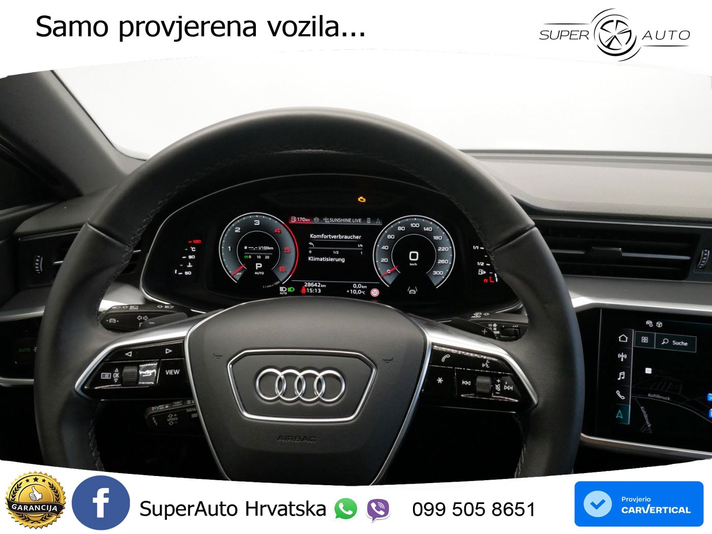 Auto je u vrhunskom stanju, sa servisnom knjigom. Od opreme: ➡️ACC - Adaptivni tempomat ➡️Ambijentalna rasvjeta ➡️Električna vrata prtljažnika ➡️Asistent za duga svjetla ➡️Head-Up Display ➡️Kožni volan ➡️LED prednja svjetla ➡️Velika navigacija ➡️Pomoć pri kočenju u nuždi ➡️Senzor za kišu ➡️Centralno zaključavanje bez ključa (Keyless) ➡️Grijanje sjedala ➡️Sportska sjedala ➡️Pomoć pri održavanju trake ➡️Start/stop sustav ➡️Upozorenje mrtvog kuta ➡️Virtual cockpit ➡️Kamera Vozilo se nalazi u Njemačkoj i za nekoliko radnih dana može biti u Hrvatskoj spremno za preuzimanje. Za sva naša vozila dajemo garanciju 1g. ➡️GARANCIJA 12MJ ➡️Cijena je do registracije i ne plaća se prijenos CIJENA: 88.700,00€ s PDV-om Mogućnosti plaćanja: - Gotovinska transakcija - Leasing (moguće bez učešća) - Staro za novo (redovna cijena) Uvozimo vozila i po želji. Pronalazimo vozilo koje Vam odgovara ili ako ste već sami našli vozilo koje želite da vam uvezemo i riješimo papire, obratite nam se s povjerenjem.;