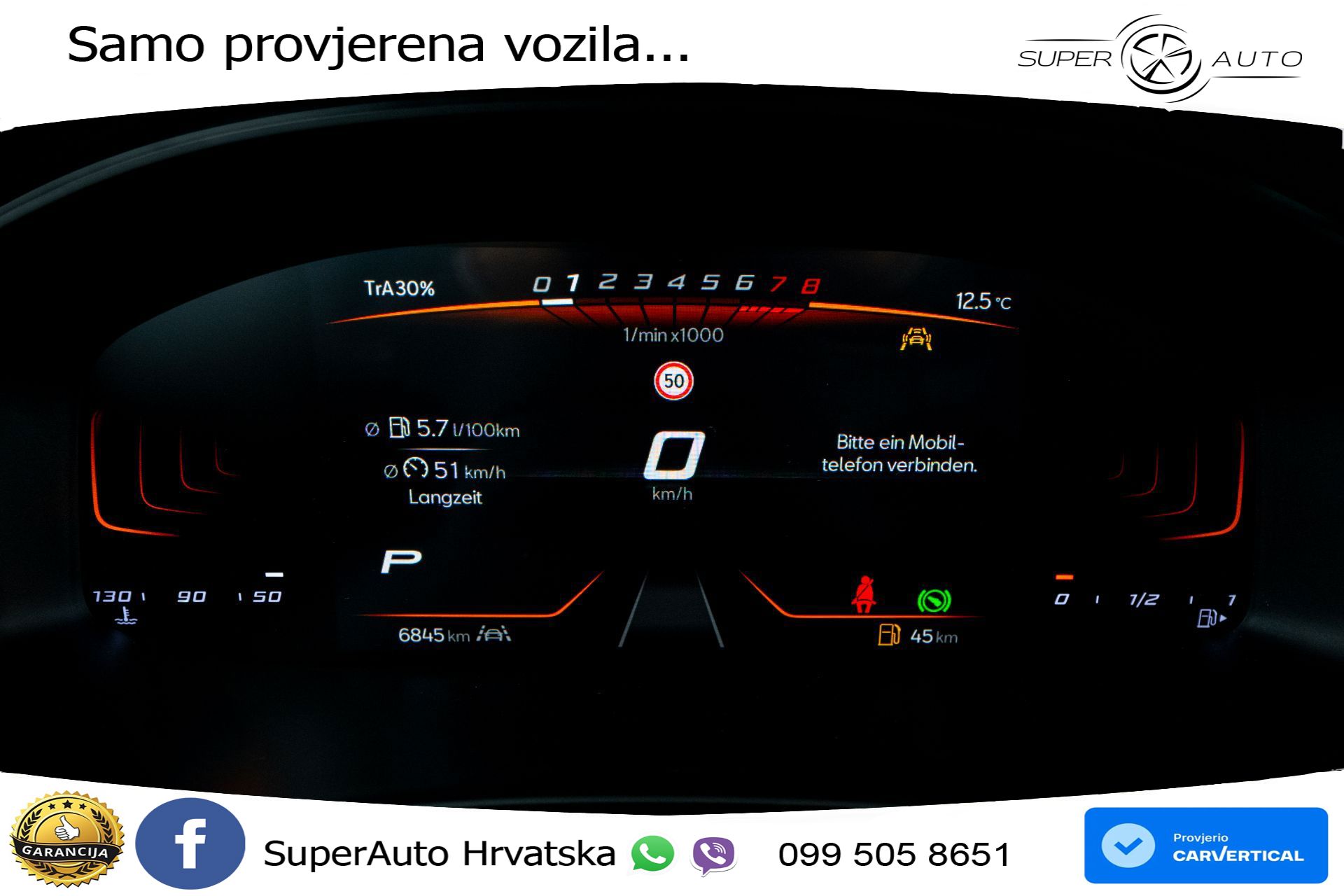 Auto je u vrhunskom stanju, sa servisnom knjigom. Od opreme: ➡️LED prednja svjetla ➡️ACC - Adaptivni tempomat ➡️Android Auto ➡️Apple CarPlay ➡️Asistent za duga svjetla ➡️Kamera ➡️Parking senzori ➡️Virtual cockpit Vozilo se nalazi u Njemačkoj i za nekoliko radnih dana može biti u Hrvatskoj spreman za preuzimanje. Za sva naša vozila dajemo garanciju 1g. ➡️GARANCIJA 12MJ ➡️Cijena je do registracije i ne plaća se prijenos CIJENA: 24.250,00€ s PDV-om Mogućnosti plaćanja: - Gotovinska transakcija - Leasing (moguće bez učešća) - Staro za novo (redovna cijena) Uvozimo vozila i po želji. Pronalazimo vozilo koje Vam odgovara ili ako ste već sami našli vozilo koje želite da vam uvezemo i riješimo papire, obratite nam se s povjerenjem.;