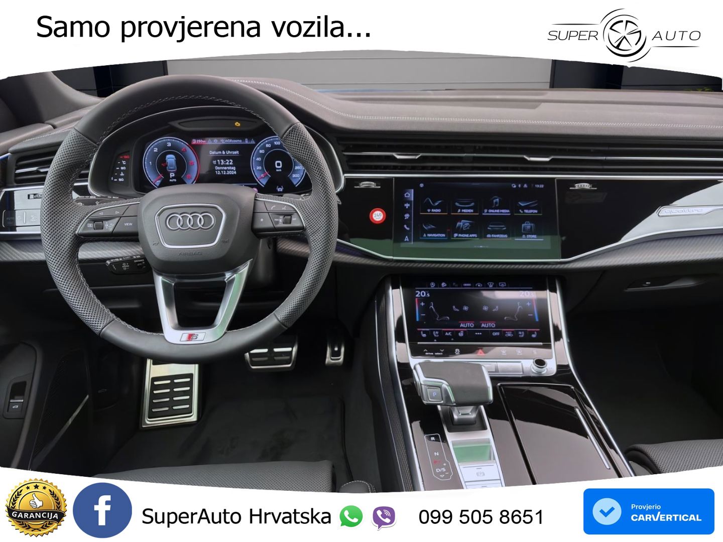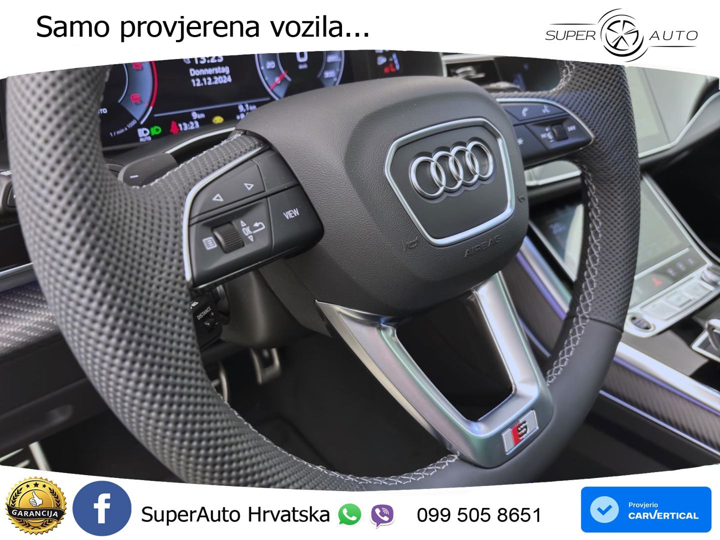Auto je u vrhunskom stanju, sa servisnom knjigom. Od opreme: ➡️ACC - Adaptivni tempomat ➡️Android Auto ➡️Apple CarPlay ➡️Grijano vjetrobransko staklo ➡️Električna vrata prtljažnika ➡️Asistent za duga svjetla ➡️Head-Up Display ➡️Kožni volan ➡️Zračni ovjes ➡️Masaža sjedala ➡️Velika navigacija ➡️Pomoć pri kočenju u nuždi ➡️Panorama ➡️Centralno zaključavanje bez ključa (Keyless) ➡️Ventilacija sjedala ➡️Grijanje sjedala sprijeda i straga ➡️Sportska sjedala ➡️Pomoć pri održavanju trake ➡️Parking grijač ➡️Virtual cockpit ➡️Kamera Vozilo se nalazi u Njemačkoj i za nekoliko radnih dana može biti u Hrvatskoj spremno za preuzimanje. Za sva naša vozila dajemo garanciju 1g. ➡️GARANCIJA 12MJ ➡️Cijena je do registracije i ne plaća se prijenos CIJENA: 146.600,00€ s PDV-om Mogućnosti plaćanja: - Gotovinska transakcija - Leasing (moguće bez učešća) - Staro za novo (redovna cijena) Uvozimo vozila i po želji. Pronalazimo vozilo koje Vam odgovara ili ako ste već sami našli vozilo koje želite da vam uvezemo i riješimo papire, obratite nam se s povjerenjem.;